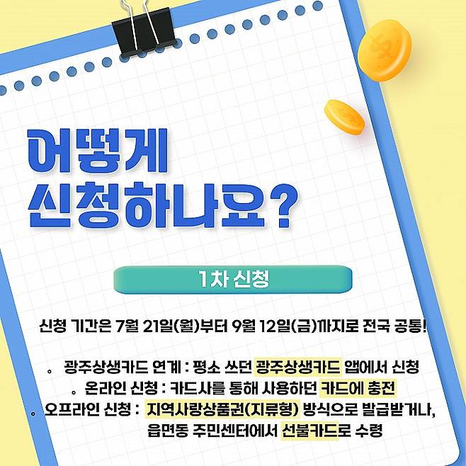 - 광주상생카드 연계 : 평소 쓰던 광주상생카드 앱에서 신청