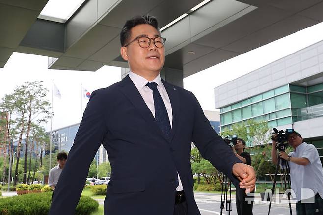 [서울=뉴시스] 권창회 기자 =백해룡 전 영등포경찰서 형사과장(경정)이 임은정 동부지검장과 비공개 면담을 위해 17일 서울 송파구 서울동부지방검찰청으로 들어서고 있다. 2025.07.17. kch0523@newsis.com