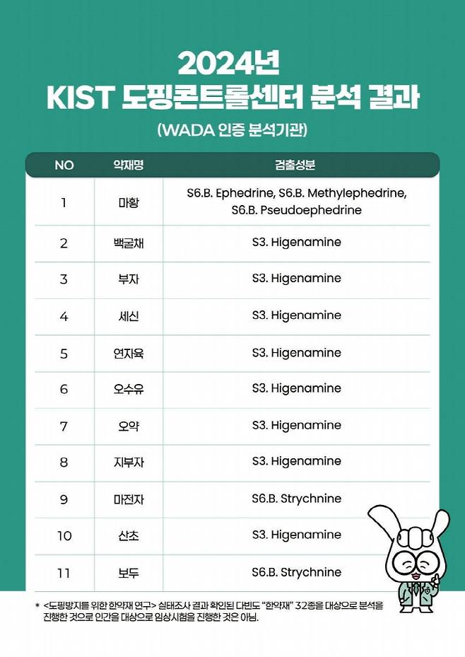 운동선수들의 한약 복용으로 인한 비의도적 도핑방지규정 위반 사례를 예방하기 위해 만든 이번 가이드라인은 2024년 KADA가 주관하고, 한국과학기술연구원(이하 KIST) 도핑콘트롤센터 및 한체대 스포츠분석센터 연구팀이 공동 수행한 '도핑방지를 위한 한약재 연구'의 주요 결과를 요약해 제작됐다.