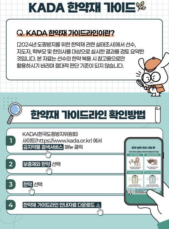 "운동선수라면 필독!" KADA, 한약재 도핑방지 가이드라인 공개[오피셜]