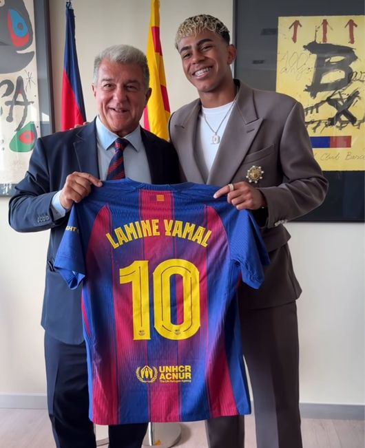 바르셀로나는 17일(한국시간) "야말과 2031년 6월까지 재계약했다. 다음 시즌 그는 등번호 10번을 달고 뛴다"라고 공식 발표했다.