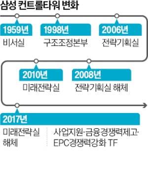 컨트롤타워 부활 가능성도 있다. 거대 그룹인 삼성을 일사불란하게 지휘하려면 컨트롤타워 몸집을 불려야 한다는 의견이 삼성 안팎에서 꾸준히 나와서다. 삼성 서울 서초사옥에 기획·전략에 주력하는 사업지원태스크포스(TF) 외에 대외협력, 인사, 홍보 조직이 집결해 옛 미래전략실 기능이 어느 정도 복원됐다. 하지만 인력과 조직 규모는 과거 미래전략실보다 훨씬 작은 것으로 알려졌다.