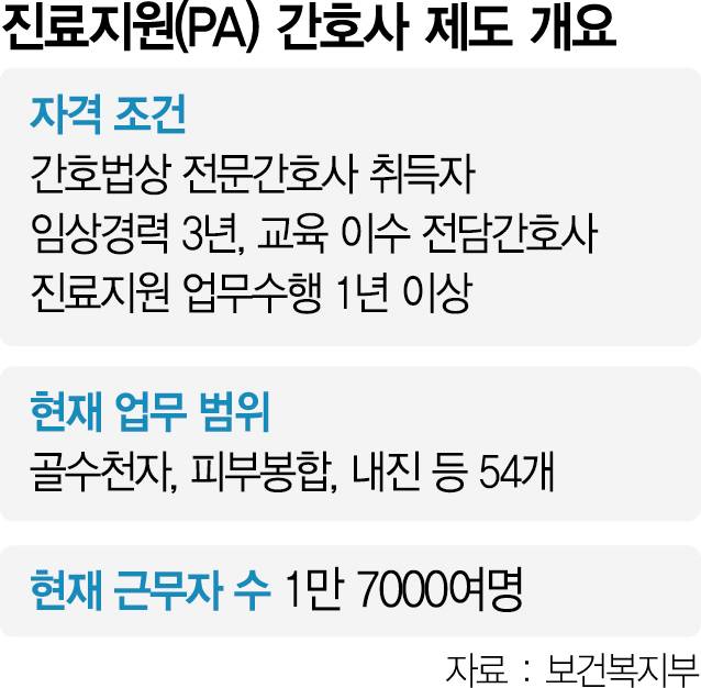 PA 간호사들은 전공의들이 대부분 사직한 상황에서 병원 운영, 진료유지에 역할을 해온 만큼 전공의가 복귀하면 업무를 두고 충돌이 빚어질 수 있다는 우려가 계속 제기되고 있다. PA 간호사는 간호법 제정으로 합법화됐으며, 정부도 이들이 수행 가능한 업무를 규정하는 ‘진료지원 업무 수행규칙’ 제정안을 만들고 있다. 입법예고를 거쳐 9~10월께 진료지원 업무 수행규칙을 시행한다는 게 정부의 목표다.