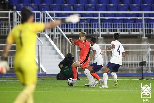 신상우 감독이 이끄는 대한민국 여자 국가대표팀은 16일 수원월드컵경기장에서 열린 대만과 2025 E-1 챔피언십 3차전에서 지소연(시애틀 레인)과 장슬기(경주)의 연속골에 힘입어 2-0 승리를 거뒀다.