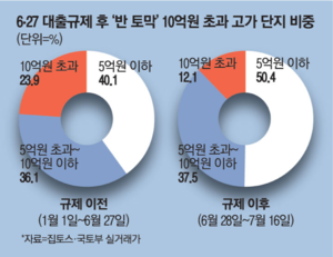 하지만 규제가 시행된 이후(6월 28일~7월 16일) 10억원 초과 아파트 거래 비중은 12.1%에 불과했다.