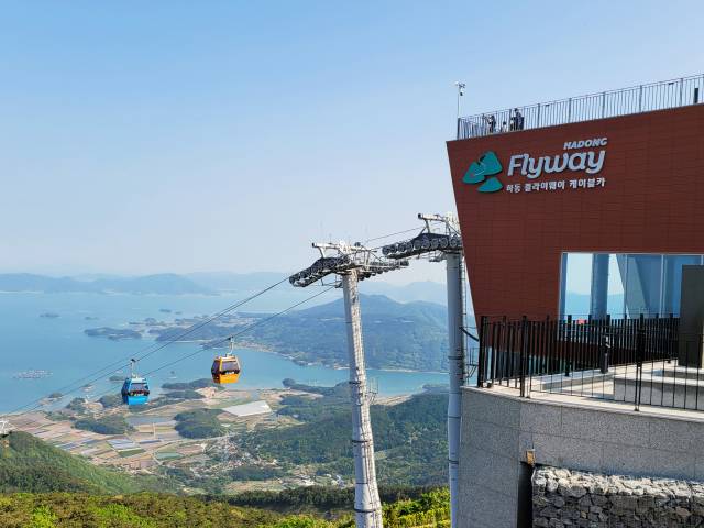 ◇스릴 만점, 금오산 케이블카·집와이어= 케이블카는 해발 849m 금오산 정상에서 출발, 청소년수련원이 있는 중평리 일원까지 총연장 2556m를 운행하는 최신식이다. 프랑스 포마사의 기술로 제작된 10인승 캐빈 40대가 설치돼 있다. 시간당 1200명, 하루 최대 9800명까지 수용 가능하다. 캐빈 중 8대는 바닥이 투명한 크리스탈로 만들어져 하늘 위를 나는 듯한 색다른 스릴을 경험할 수 있다. 케이블카의 정상 출발점과 같은 금오산 정상에는 또 하나의 명소, 하동 집와이어가 있다. 총길이 3420m로 아시아 최장이다. 경사도 27%, 최고 시속 120㎞로 하늘을 가로지르며 내려오는 하강 레포츠의 정수를 맛볼 수 있다. 한려해상국립공원의 다도해 절경과 금오산의 수려한 자연을 하늘에서 내려다보며 체험할 수 있어, 자연 감상과 익스트림 스포츠를 동시에 만족시키는 독보적인 관광지다. 이병문 기자 bmw@knnews.co.kr