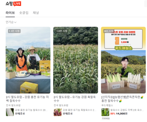 실제 양구의 곰취, 사과, 시래기, 홍천의 옥수수, 인제의 블루베리와 명이나물 등 강원지역 농산물을 판매하는 네이버 쇼핑라이브는 동시간대 9만명이 시청하는 등 소비자들의 관심을 끌고 있다.