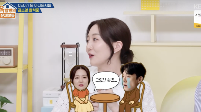 17일 방송된 KBS2TV 예능 프로그램 옥탑방의 문제아들에서는 김소영이 출연해 오상진과의 연애 비하인드와 결혼 후 일상을 공개했다.