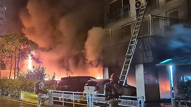 [속보] 경기 광명 아파트 주차장 화재 '대응 2단계'‥심정지 3명 등 중상 5명
