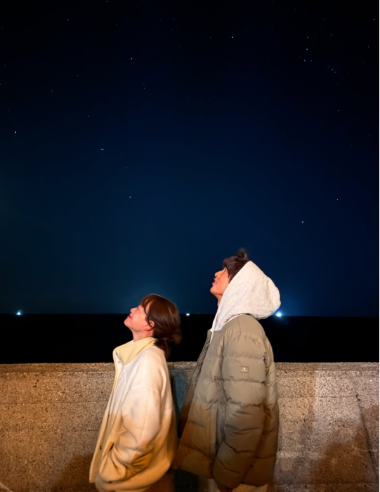 밤하늘 아래 따뜻한 미소가 피어올랐다. 한 장의 사진 속에서 청춘의 설렘이 고스란히 전해졌다.