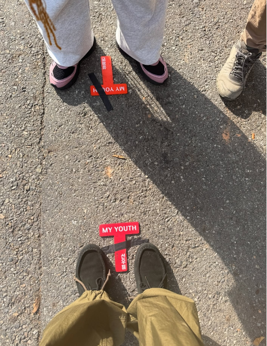 첫 장면에서는 송중기와 천우희가 밤하늘을 함께 올려다보며 따뜻한 미소를 짓는 모습이 담겼다. 후드 집업과 내추럴한 패딩룩으로 꾸안꾸 매력을 뽐냈고, 천우희는 편안한 니트와 포근한 외투로 청순한 분위기를 완성했다. 두 번째 장면에서는 두 사람이 서로 어깨동무한 채 환하게 웃으며 브이 포즈를 취했고, 마지막 사진에서는 촬영 현장의 ‘MY YOUTH’ 마킹이 바닥에 찍히며 현장감을 더했다. 겨울밤 공기와 청춘의 설렘이 모두 담긴 컷이었다.