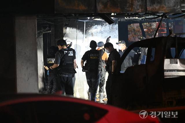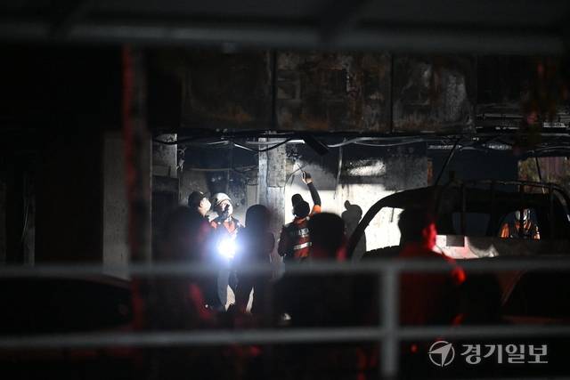 17일 오후 9시5분쯤 광명시 아파트 주차장에서 발생한 화재가 약 1시간30분 만인 오후 10시32분에 진압됐다. 소방당국은 대응 2단계를 발령하고 장비 43대와 인력 110명을 투입했다. 이 화재로 심정지 3명 등 총 32명이 다쳤으며, 소방당국은 현재 화재 원인과 피해 규모를 조사 중이다. 조주현기자·김도현인턴기자