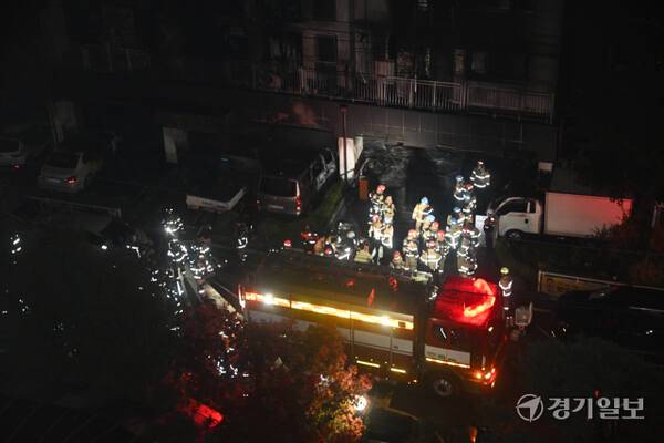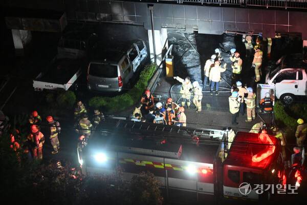 17일 오후 9시5분쯤 광명시 아파트 주차장에서 발생한 화재가 약 1시간30분 만인 오후 10시32분에 진압됐다.