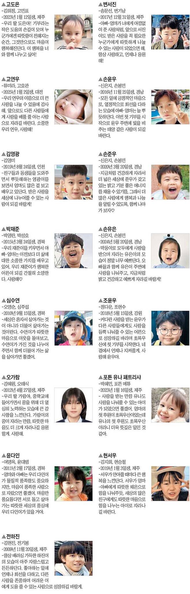 아이에게 나눔의 기쁨을 선물해 주세요. 아이 첫돌이나 생일 등을 기념해 초록우산 홈페이지(www.childfund.or.kr)의 ‘우리 아이 첫 기부’ 사이트를 통해 참여하실 수 있습니다. 매일아이 사이트(maeili.com)에서도 가능합니다. 매달 기부에 참여한 가족과 아이의 사진, 기념하고 싶은 날과 사연을 조선일보 ‘아이가 행복입니다’ 지면에 소개합니다. 엄마와 아이를 위한 매일유업 ‘매일두 포인트’ 3만원과 기부 소식을 조선일보 1면 머리기사로 제작한 PDF 파일도 함께 드립니다.