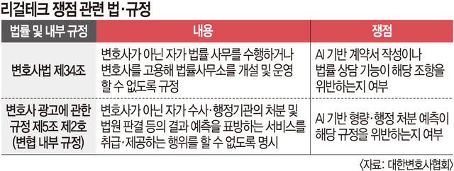 다만 대한변협 등 법조계의 반발도 예고돼 있다. 대한변협은 로톡 사태 등에서 리걸테크 서비스 도입에 대한 반대 의사를 명확히 드러내 왔다. 변협은 변호사법과 내부 규정을 들어 변호사가 아닌 자가 법률 사무를 수행하는 행위와 수사·행정기관의 처분, 법원 판결 등의 결과 예측을 표방하는 서비스를 제공하는 행위를 금지한 상태다.