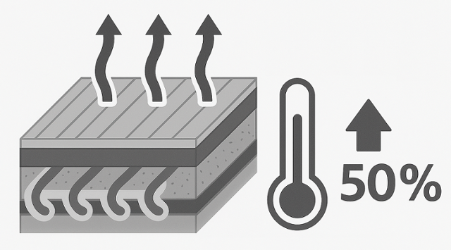 이 기술은 마루의 하부에 열전도성이 뛰어난 동 박판을 삽입해, 바닥의 복사열이 마루 상부로 고르게 퍼질 수 있도록 설계되었다. 특히 구리는 석재보다도 높은 열전도율(약 400 W/m·k)을 지닌 재료로, 보일러 효율을 높이고 에너지 소비는 줄이며, 표면온도는 보다 안정적으로 유지시킨다.