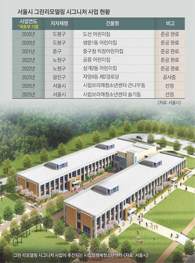 특히 시그니처 사업은 그린리모델링의 지역 거점 플랫폼을 만들기 위한 것으로, 서울시는 시립보라매청소년센터까지 총 8곳을 선정한 바 있다.