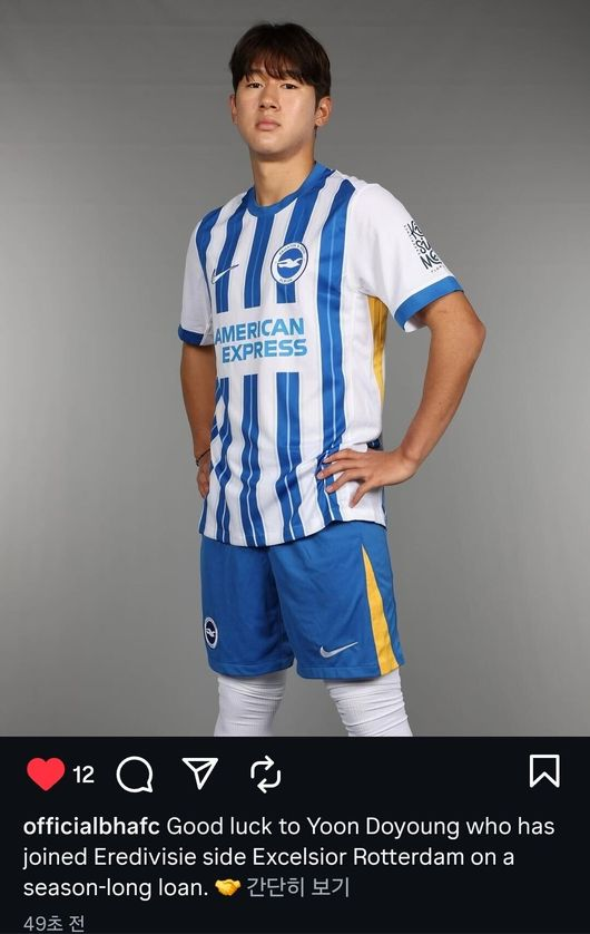 [OSEN=노진주 기자] 윤도영(19)이 네덜란드 에레디비시 클럽 엑셀시오르로 임대 이적하며 유럽 무대 도전에 나선다. 한국 선수가 엑셀시오르 유니폼을 입은 것은 김남일 이후 22년 만이다. 그런데 그의 원 소속팀 브라이튼이 임대 소식을 일본어로 알리는 어처구니없는 실수를 저질렀다.