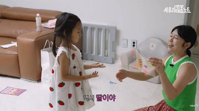 이어 그림 그리기도 진행, 남자 아이들은 투명 필름을 사유리의 얼굴에 대고 낙서를 하는 반면 다솜이는 투명 필름에 사유리의 얼굴을 그린 뒤 이를 사유리에게 건넸다. 이에 사유리는 "역시 딸이다. 이모 그린 거냐. 역시 딸 있는 엄만 너무 좋다"며 진심으로 감동 받은 뒤, "둘째 고"라고 외쳐 웃음을 안겼다.