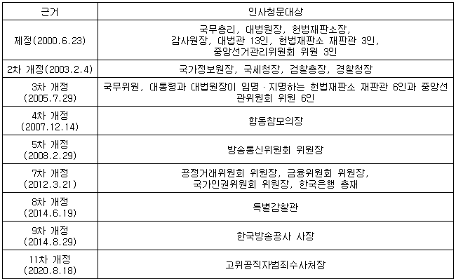 [표] 인사청문회법 개정에 따른 인사청문 대상자 확대 과정