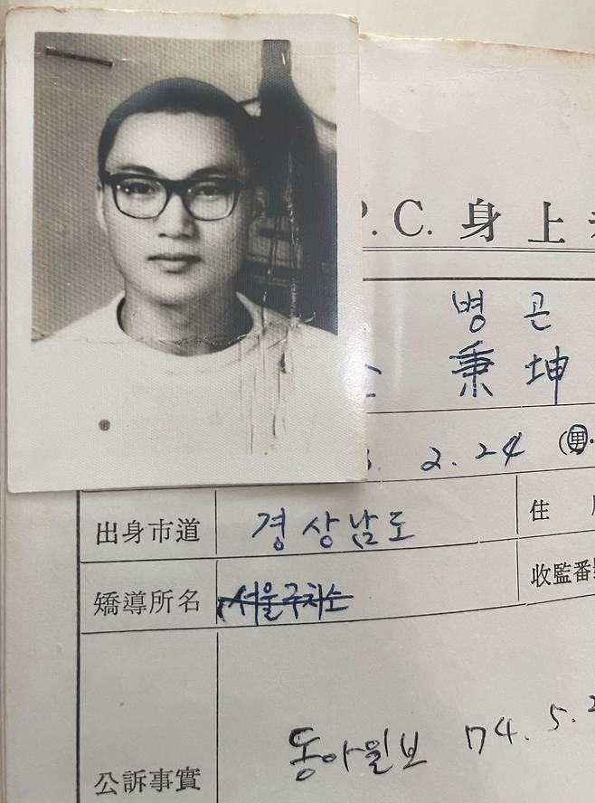 | ▲ 1974년 민청학련 사건으로 구속되었을 때의 서울구치소 신상기록부 |