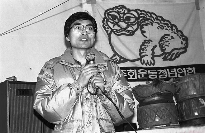 | ▲ 1987년 11월 민청련 집회에서 발언하고 있는 김병곤 부의장 |