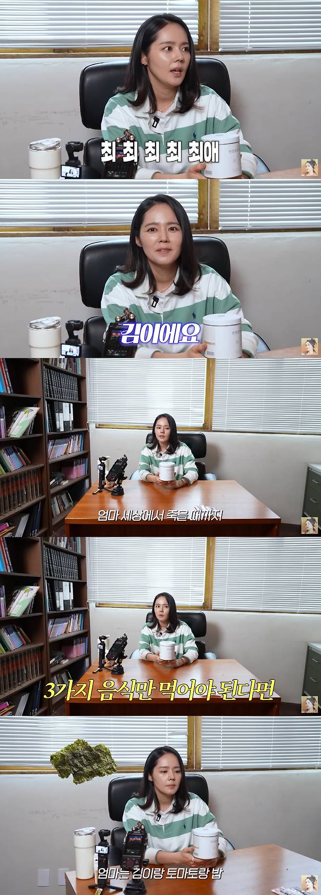 또한 그는 김을 최애 간식으로 꼽으며 "딸이 '죽기 전에 세 가지만 먹어야 한다면 뭘 고르겠냐'고 묻길래, 나는 '김, 토마토, 밥'이라고 답했다"고 밝혔다.