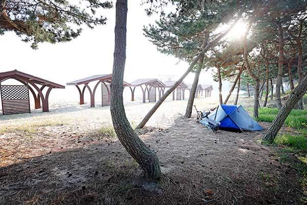 캠핑 1~2인용 텐트 1만5,000원. 3~4인용 텐트 2만 원. 개수대, 화장실, 샤워장(온수 불가). 목재 그늘막 아래 또는 해변 안쪽 소나무 그늘 아래 야영. *'승봉도 캠핑장'은 바다가 보이지 않는 섬 안쪽이고, 뙤약볕이라 이용객이 드물다. 이일레해수욕장과 캠핑장 외에는 야영이 금지되어 있다.