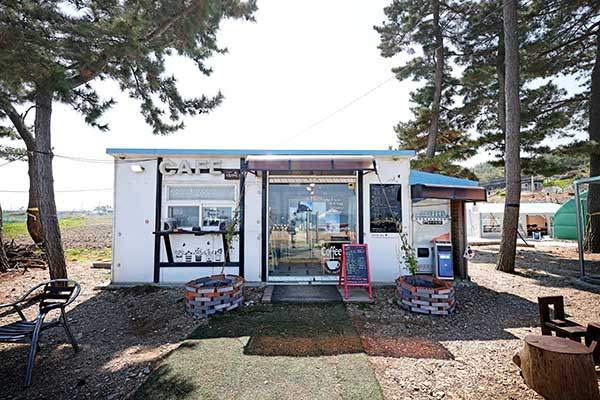 에어컨이 나오는 도시적인 카페는 없다. 노상 카페인 선창커피숍과 작은섬배카페가 있다. 선창커피숍은 선착장 앞의 노상 판매점으로 음료 외에도 해물, 소라숙회, 해삼·멍게, 파전, 라면 등을 파는 식당에 가까운 카페다. 작은섬배해변의 카페도 음료 외에 국수와 파전, 두부김치와 주류를 파는 식당 겸 카페다.