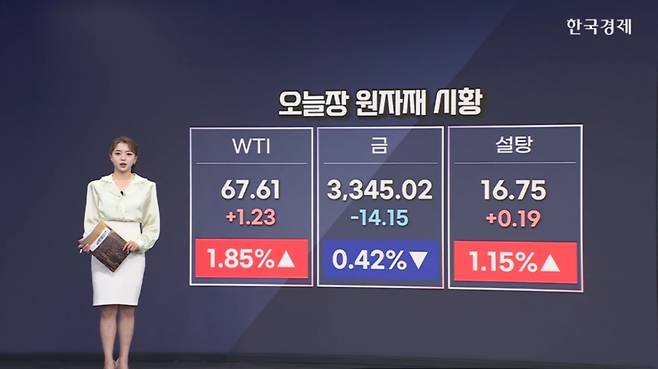 네, 원자재 시황도 살펴보겠습니다. 5시 수치를 기준으로 하고 있고요. 오늘장 눈에 띄었던 원자재 이슈부터 짚어보면, 국제유가는 이라크 자치구인 쿠르디스탄 유전에 드론 공습이 이어지며 상승했고요. 금 선물은 견조한 미 경제지표에 금리인하 기대감이 줄며 오늘장 소폭 하락했습니다. 마지막으로 트럼프 대통령이 코카콜라에 사탕수수 설탕을 쓰라고 강조하면서 설탕 선물 역시 상승세 보였습니다.