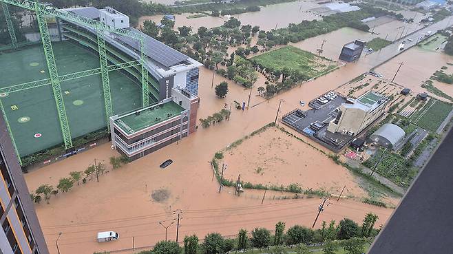 ▲ 광주 전역에 극한 호우가 쏟아진 17일 오후 광주 북구 신용동 일대 도로가 침수돼 차량들이 물에 잠겨 있다.