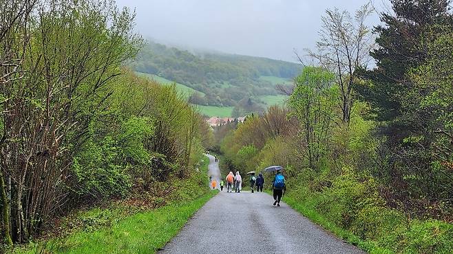 수비리(Zubiri)로 가는 내내 비가 뿌렸다. 전날 피레네를 넘을 때보다 비가 얌전해서 걸을 만했다. 수비리 가는 길은 피레네 자락의 내리막길이라 걷기가 수월했고 예쁜 오솔길이 많아 심심하지 않았다. 이 '초긍정 모드'는 비 오는 피레네의 악몽이 가져다준 선물인가.