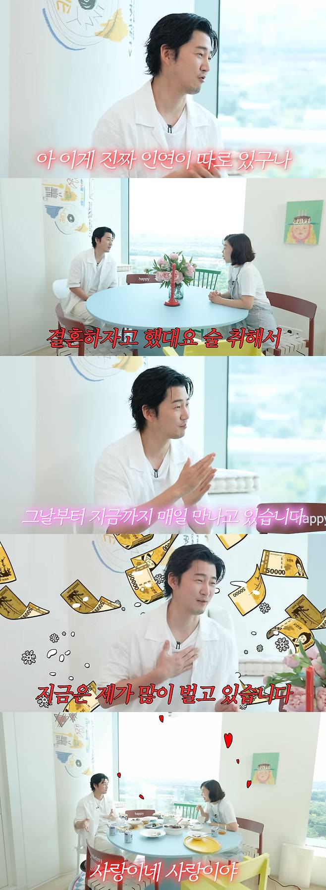 먼저 혼인신고를 하고 1년 뒤 결혼식을 올린 이유에 대해서는 "원래 결혼식 안 하려고 했는데 아내가 친구 결혼식 보고 '나도 하고 싶어'라고 해서 뒤늦게 올렸다"며 '사랑꾼' 면모를 드러냈다.