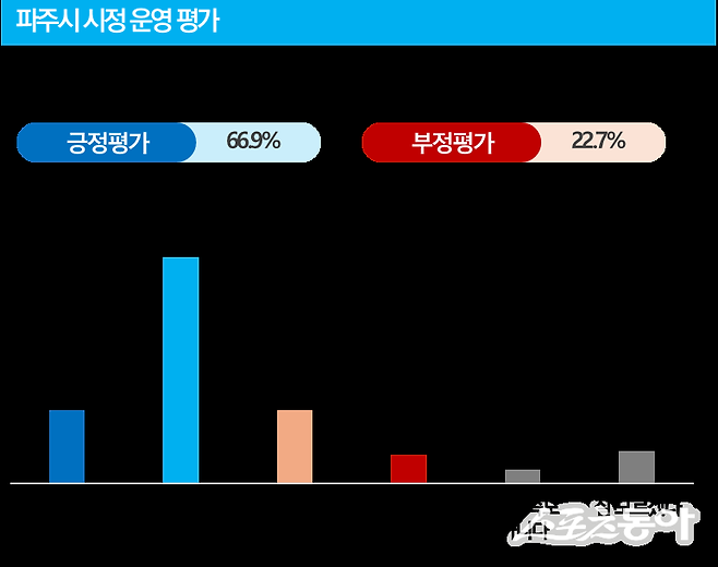 파주시가 의뢰하고 여론조사기관 ㈜글로벌리서치에서 수행한 조사 결과에 따르면 파주시정에 대한 긍정 평가가 66.9%(매우 잘하고 있다 16.2%, 다소 잘하고 있다 50.7%)로, 부정 평가 22.7%보다 월등히 높은 것으로 나타났다.