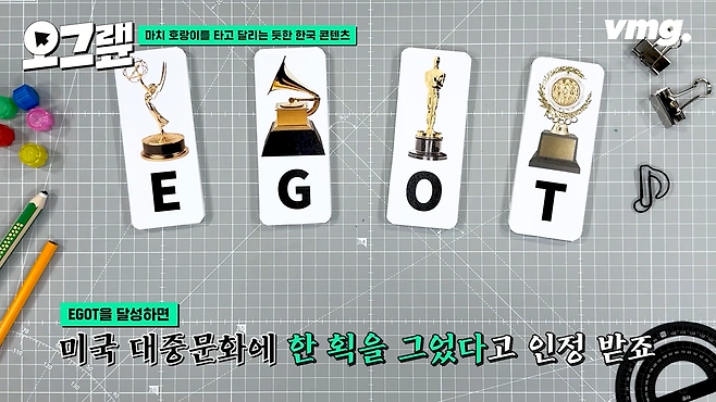 그런데 이번 '어쩌면 해피엔딩'의 수상으로 대한민국이 국가단위로 EGOT을 달성하게 된 겁니다. 1993년에 소프라노 조수미, 2011년에 첼리스트 김기현, 2012년에 황병준 엔지니어가 그래미상을 수상하면서 G를 제일 먼저 달성했고요, 그다음은 봉준호 감독의 '기생충'이 2020년에 외국어 영화로는 최초로 아카데미 작품상을 수상하면서 오스카 트로피도 거머쥐었죠. 그리고 2022년에 오징어게임이 에미상을 수상하면서 EGO를 만들었고 가장 어려울 것이라고 생각되었던 연극과 뮤지컬 분야에서 이번에 토니상을 받으면서 EGOT을 완성시킨 겁니다.