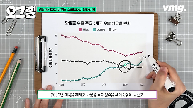 전 세계 코스메틱 시장을 주름잡던 곳은 프랑스와 미국이었습니다. 그런데 우리나라 성장세가 심상치 않죠. 코로나19 판데믹에 이커머스 거래가 급격히 증가하면서 우리나라 기업들이 그 효과를 톡톡히 보면서 꾸준히 수출점유율을 높여가고 있어요. 2020년 미국을 제치고 화장품 수출 점유율 세계 2위에 올랐고, 그 상승세는 지금도 이어지고 있습니다.