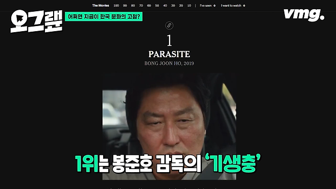 '기생충' 외에 100위 안에 들었던 한국 영화는 '살인의 추억'과 '올드보이'가 있었습니다. 독자들 순위에선 '아가씨'도 포함되었고요.