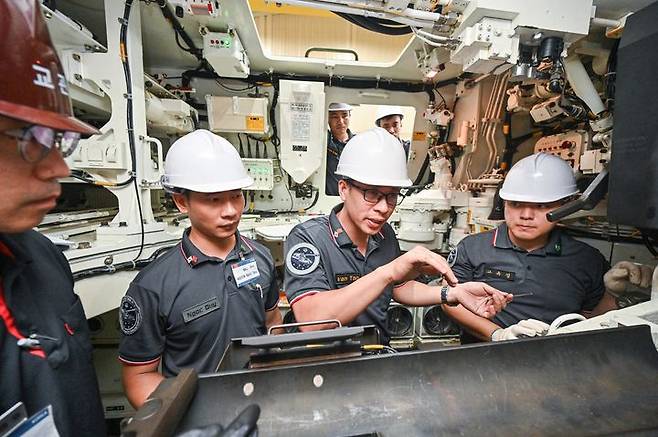 K9자주포 정비 노하우 교육 받는 교육생들