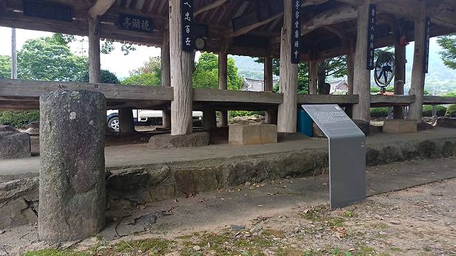 만호정은 자작일촌을 이룬 이천서씨, 진주정씨, 해남윤씨 세 성씨가 관리했다고 한다. 고려 중기에 처음 지어졌다는데, 기록으로 확인되지는 않는다. 정자 앞에 선 작은 돌기둥이 눈에 띈다. 무엇에 쓰는 물건일까?