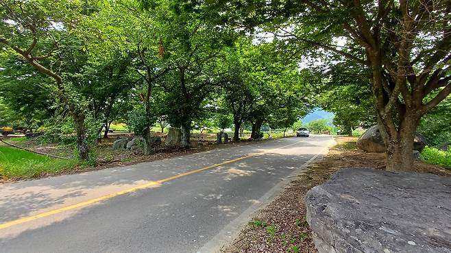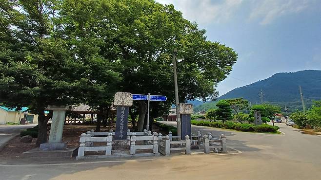 | ▲ 철야마을 풍경. 옛사람을 기리는 비석이 마을 앞에 줄지어 서 있다. |