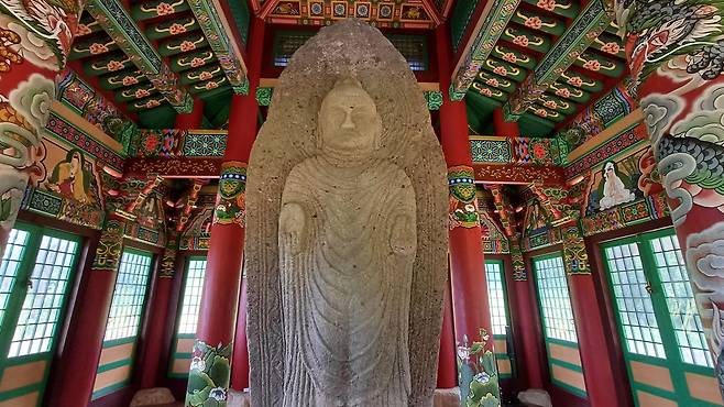 | ▲ 미륵사 석조여래 입상. 높이 5.38미터로 고려 초기 조각된 것으로 추정된다. |