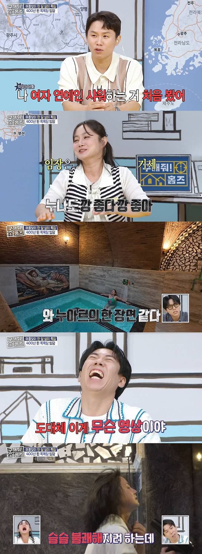 한편 박나래가 온천 후 머리를 감는 장면까지 나오자 양세찬은 "도대체 이게 무슨 영상이냐. '구해줘 홈즈'냐 뭐냐. 갑자기 샤워신이 웬 말이냐"며 "슬슬 불쾌해지려고 한다"며 황당한 웃음을 감추지 못했다. 이에 김대호는 "구해줘 내 눈"이라며 너스레를 떨었다.