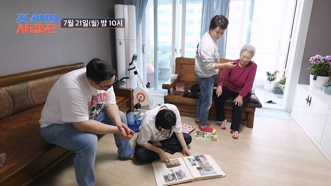 사진 촬영을 앞두고 이경실은 직접 어머니의 메이크업에 나섰고 손수아와 손보승 남매는 할머니의 젊은 시절이 담긴 흑백사진을 들여다본다.