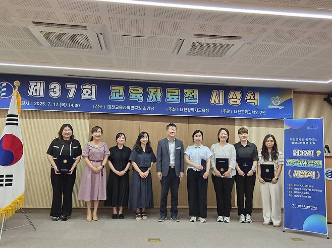 대전교육과학연구원은 17일 본관 소강당에서 열린 제37회 교육자료전의 최종 입상한 초등·특수학교 교원 중 1등급 2팀, 2등급 1팀, 3등급 1팀, 총 4팀 9명에 대해 시상식을 개최했다고 밝혔다.