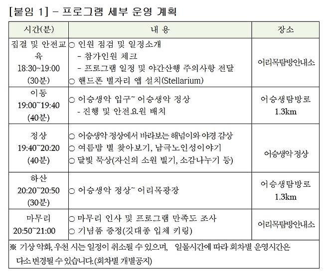 제주도 세계유산본부 한라산국립공원관리소(소장 홍승지)가 8월 야간 특화 탐방 '어승생악 달빛 아래, 별 하나 나 하나'를 처음 선보인다.