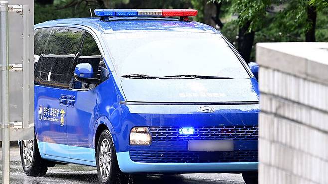 ▲ 윤석열 전 대통령이 탑승한 호송차가 18일 서울 서초구 서울중앙지방법원으로 들어서고 있다.