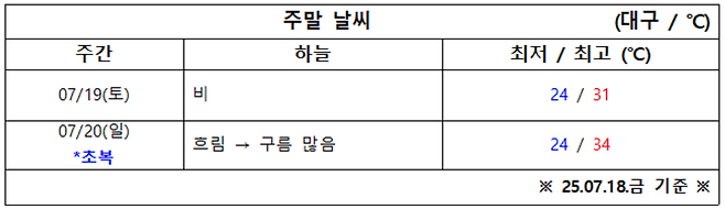 7월 3주 차 대구·경북 주말 ‘날씨 체크’