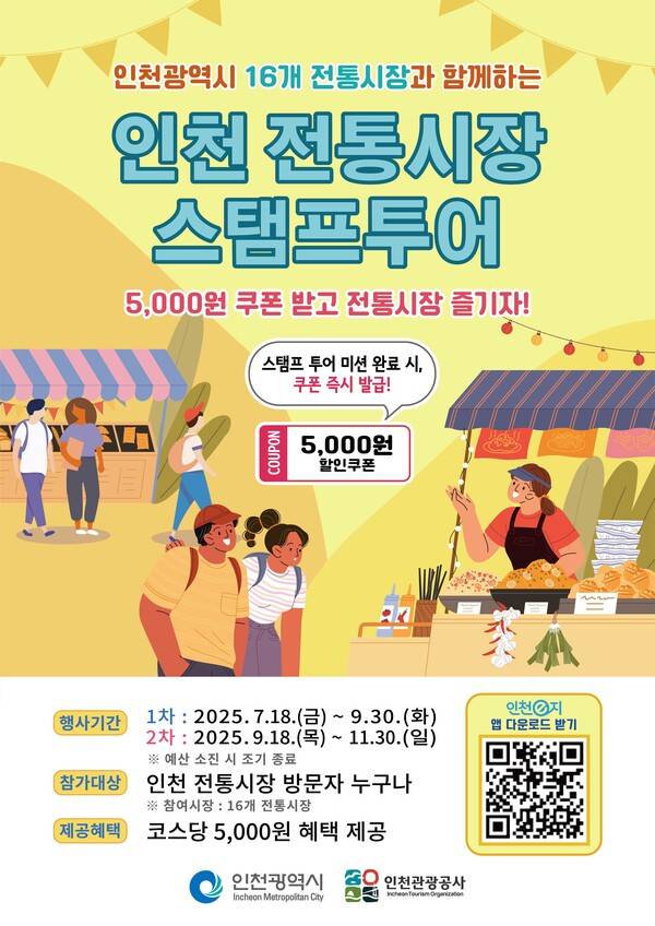 인천광역시와 인천관광공사가 전통시장의 매력을 알리고 지역경제 활성화를 도모하기 위해 7월 18일부터 11월 30일까지 '2025 인천 전통시장 모바일 스탬프투어'를 개최한다.