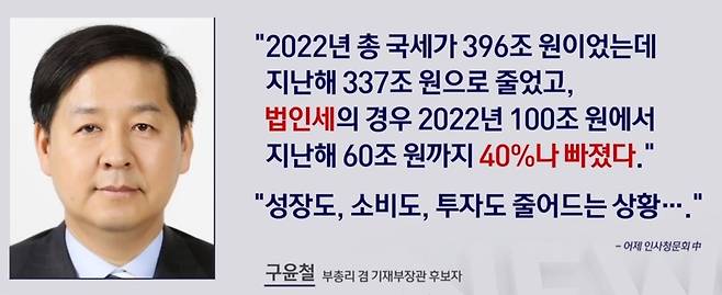 구 후보자는 윤석열 정부 시절 낮춘 법인세율을 다시 높이는 방안을 적극 검토하겠다고 말했습니다.
