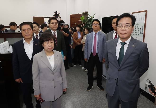 송 비대위원장을 포함해 강선영·곽규택·구자근·권영세·김은혜·김장겸·박덕흠·박수민·박준태·박충권·서지영·서천호·신동욱·유상범·윤한홍·장동혁·조배숙·조승환·최수진 의원 등 20여 명이 권 의원실 내부로 들어갔다.